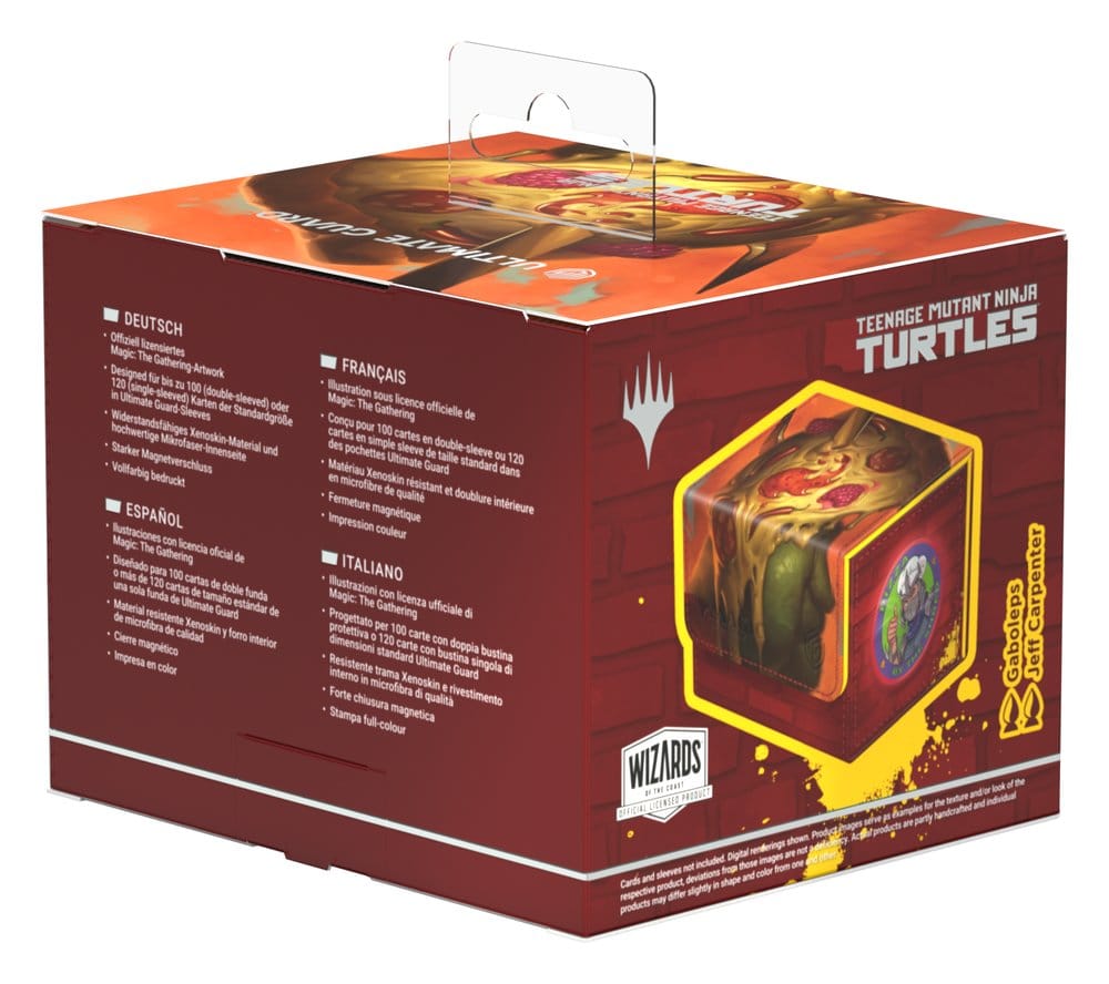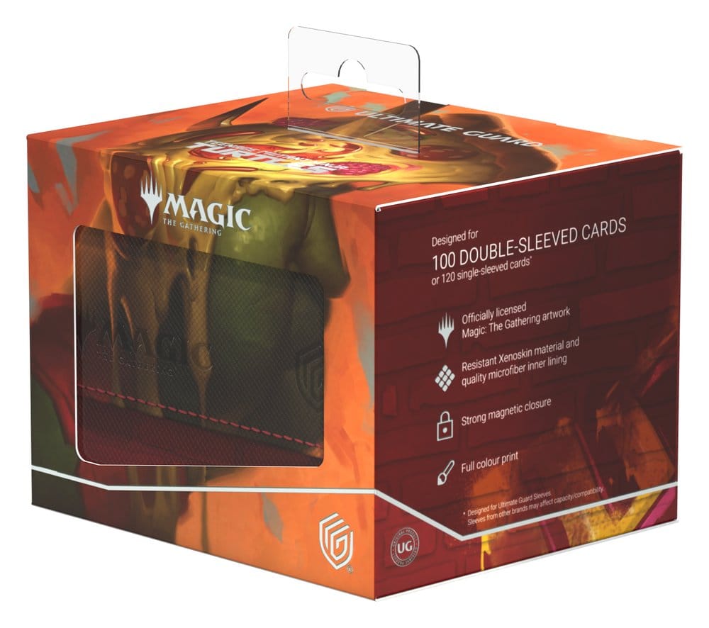 Der Sidewinder 100+ Xenoskin von Ultimate Guard ist eine Premium-Deckbox für Magic: The Gathering, die dank ihres widerstandsfähigen Xenoskin-Materials, der hochwertigen Mikrofaserinnenseite und eines starken Magnetverschlusses herausragenden Kartenschutz garantiert — und gleichzeitig einen einfachen und bequemen Zugriff auf die Karten im Inneren ermöglicht. Mit Platz für 100 doppelt gesleevte Karten (in Ultimate Guard-Hüllen*) und bedruckt mit offiziell lizenzierten Artworks aus dem "Magic: The Gathering | Teenage Mutant Ninja Turtles"-Set ist der Sidewinder 100+ Xenoskin die perfekte MTG-Deckbox für alle Magic-Formate (Commander/EDH, Modern, Standard, usw.). Kombinierbar mit Omnihive-, Superhive- und Smarthive-Boxen von Ultimate Guard.